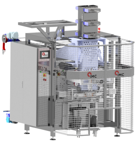 El modelo AC-1200, es una embolsadora vertical diseñada para la creación de sacos confeccionados a partir de bolsas de hielo o de otro tipo de productos.